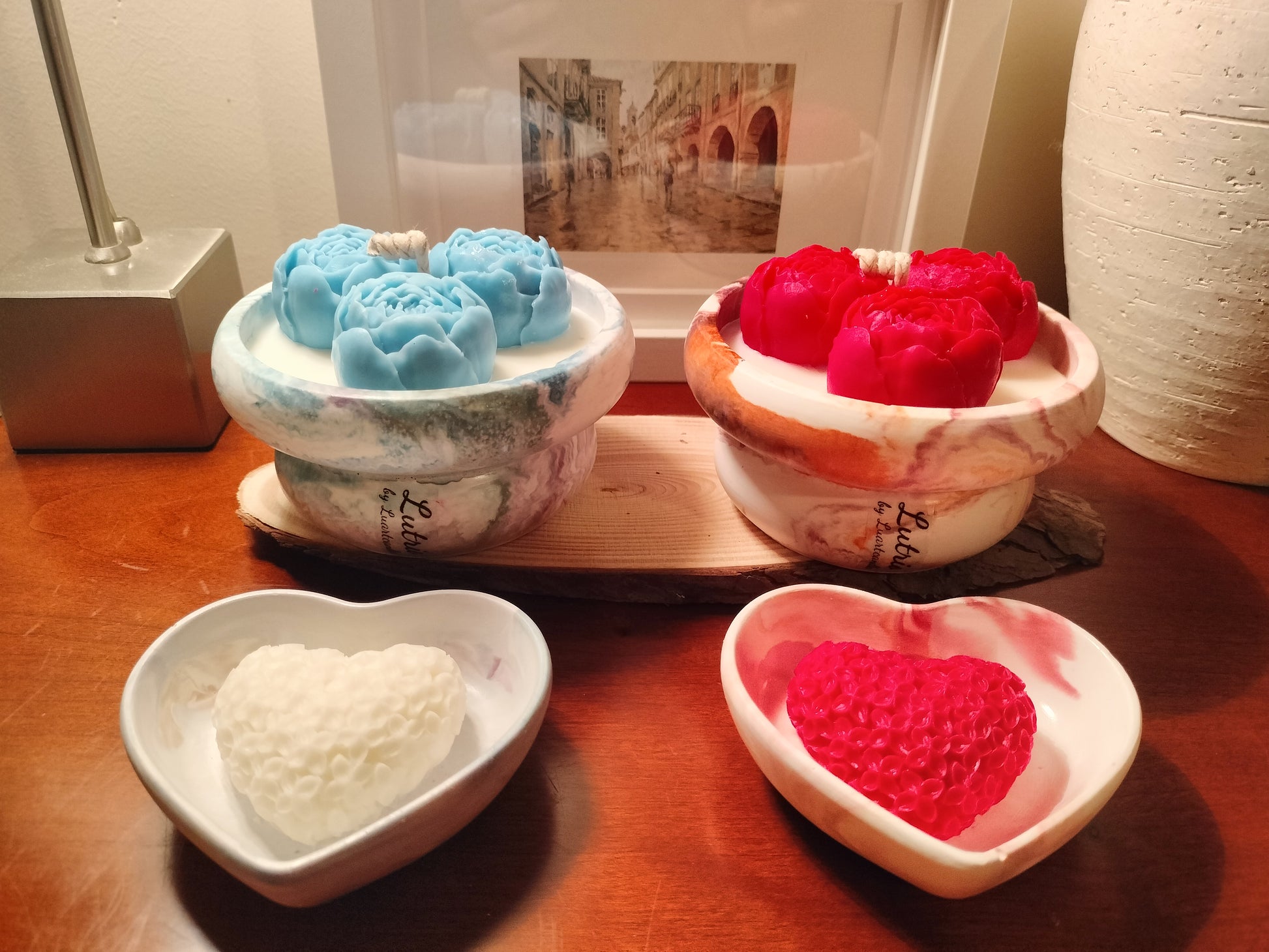 A Sofisticação do Mármore em sua Casa A Lutrio é a expressão máxima da elegância contemporânea do nosso Atelier. Apresentada numa taça de cerâmica com um acabamento marmoreado único, cada peça é uma obra de arte irrepetível. O design é coroado por três delicadas rosas de soja, simbolizando a harmonia e o cuidado artesanal em cada detalhe.